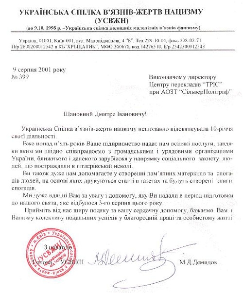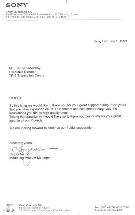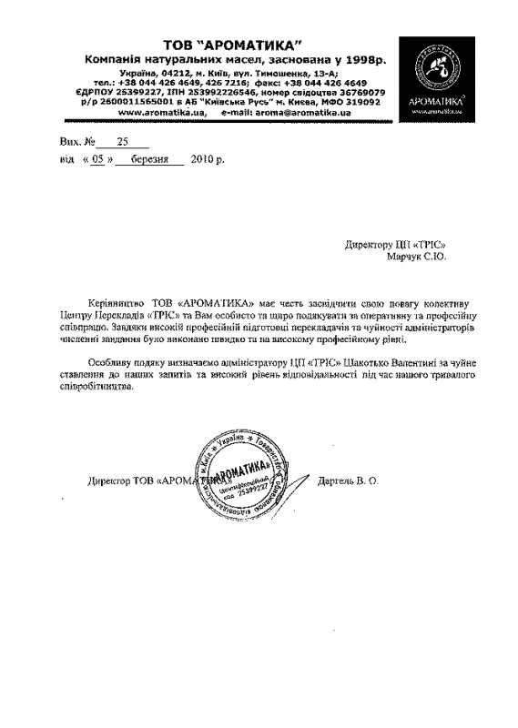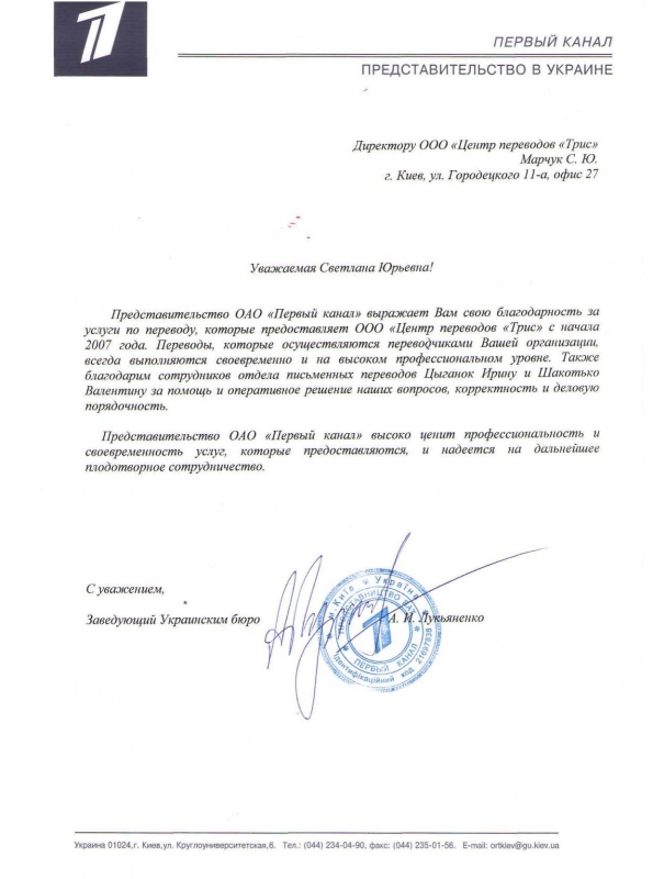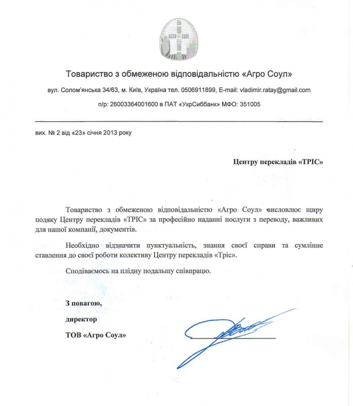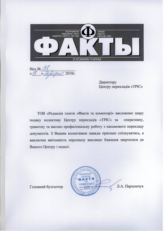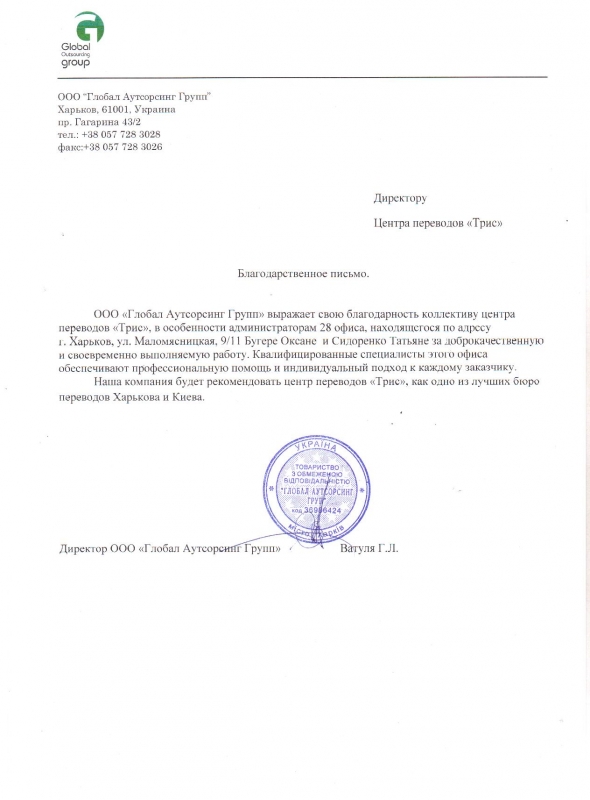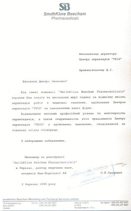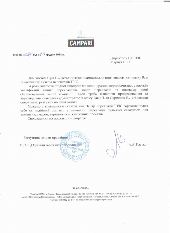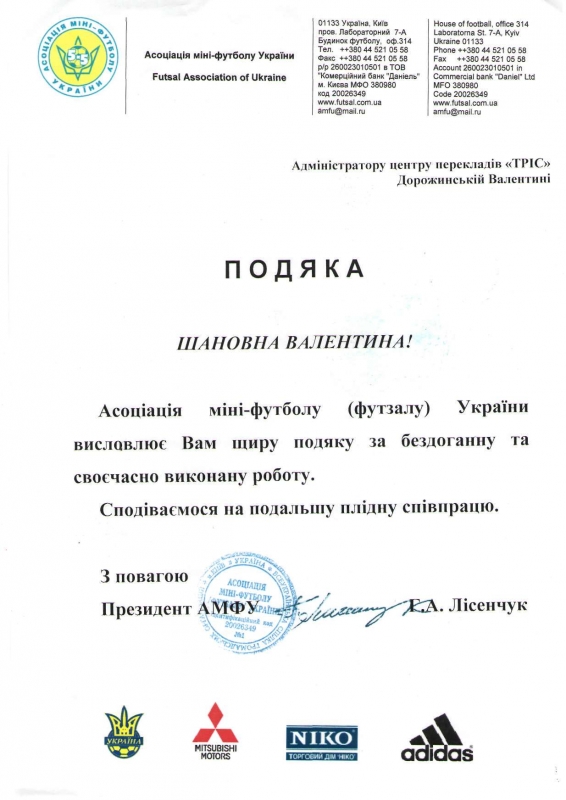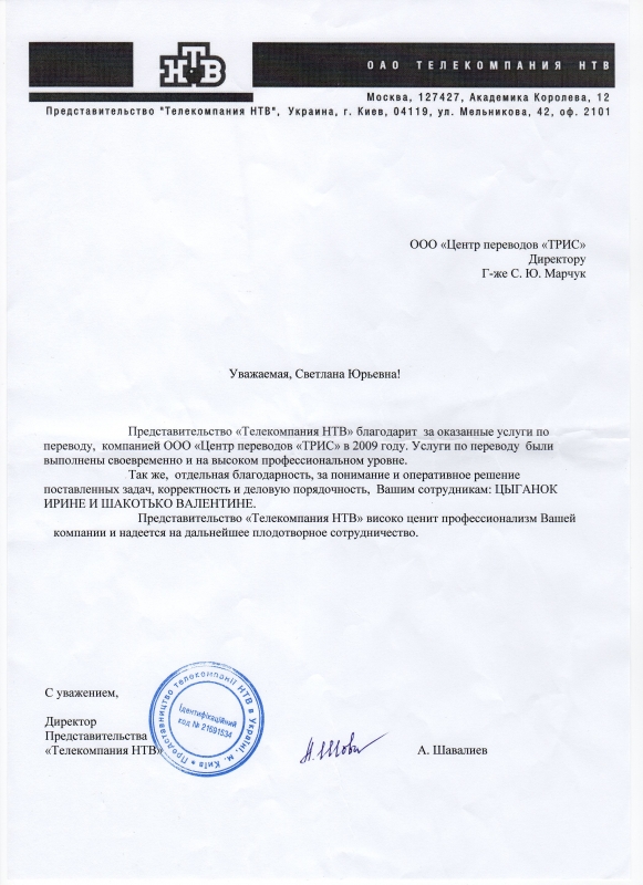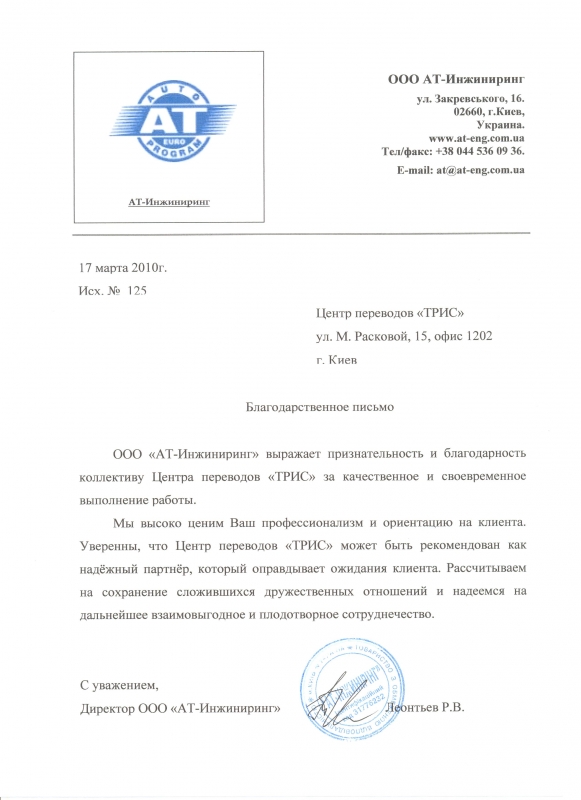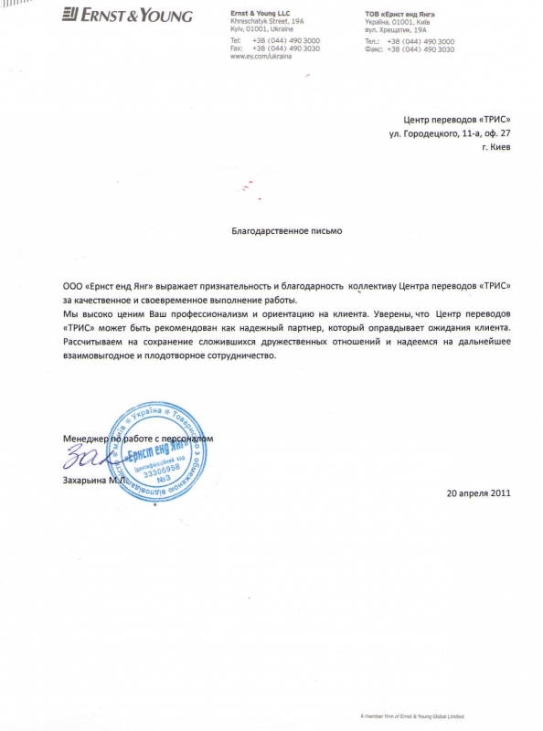 Список благодарностей бюро переводов «Трис» от наших клиентов. Мы по праву гордимся сотрудничеством с известными украинскими и международными компаниями. Каждый экземпляр закреплён мокрой печатью организации и хранится в главном офисе.