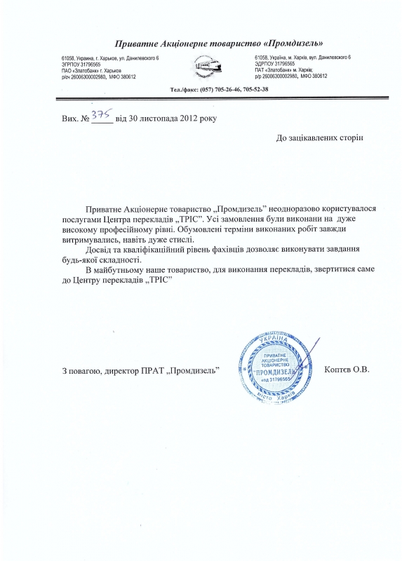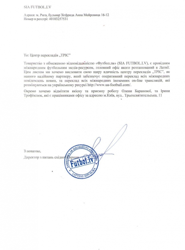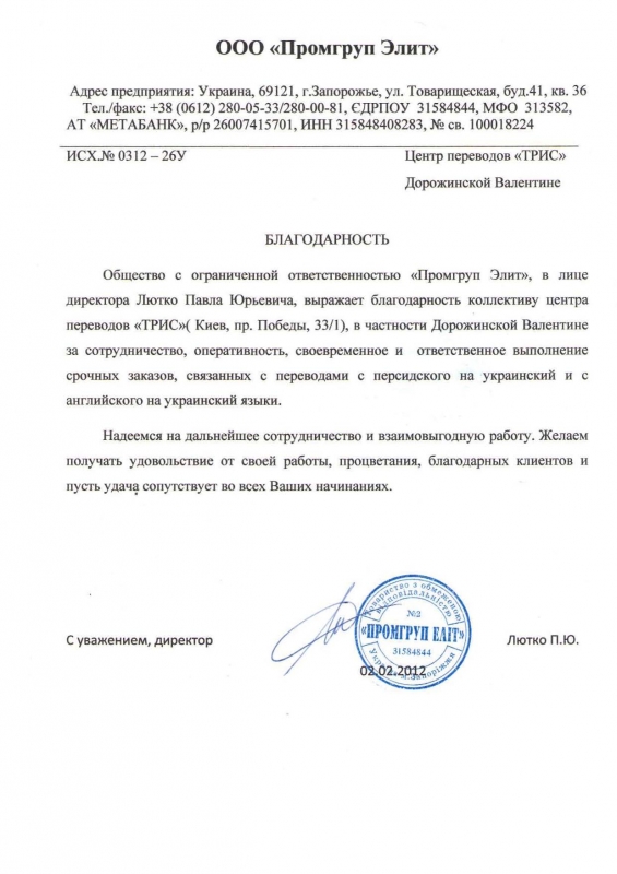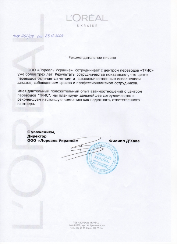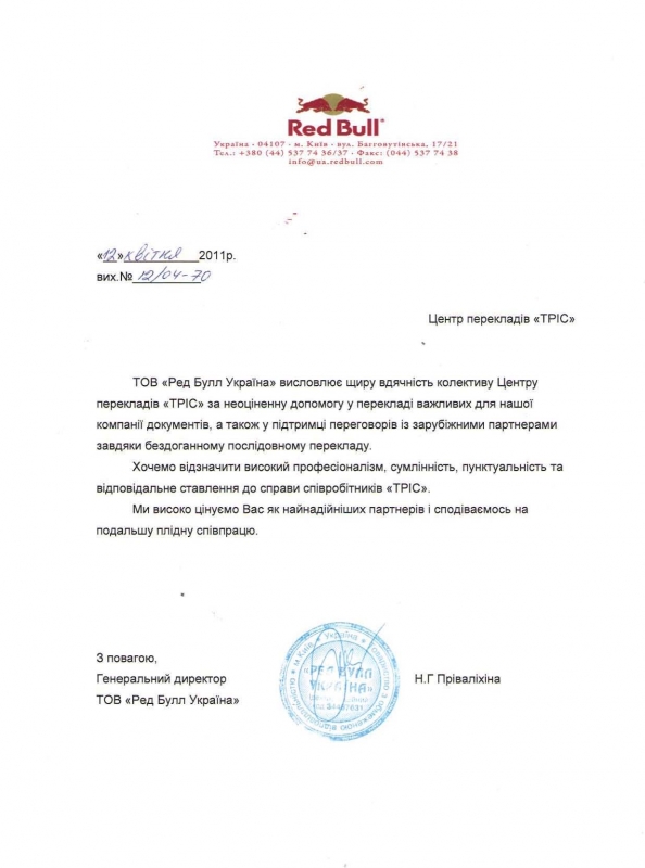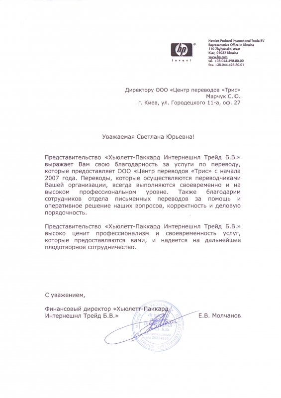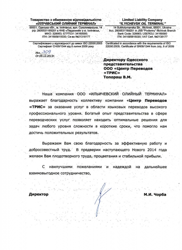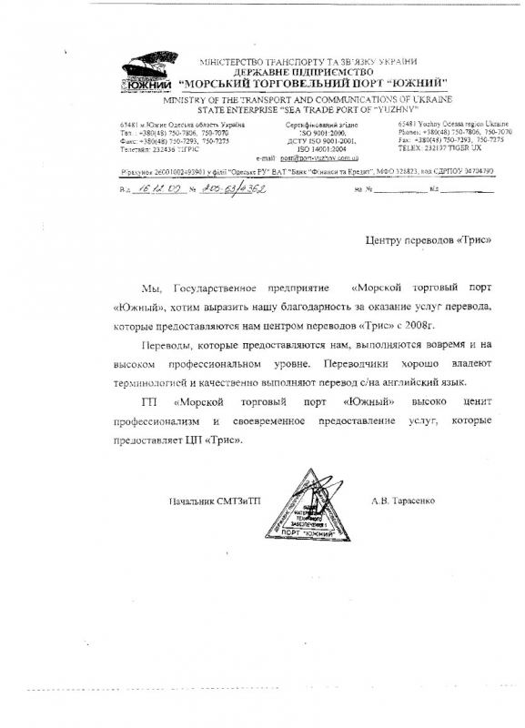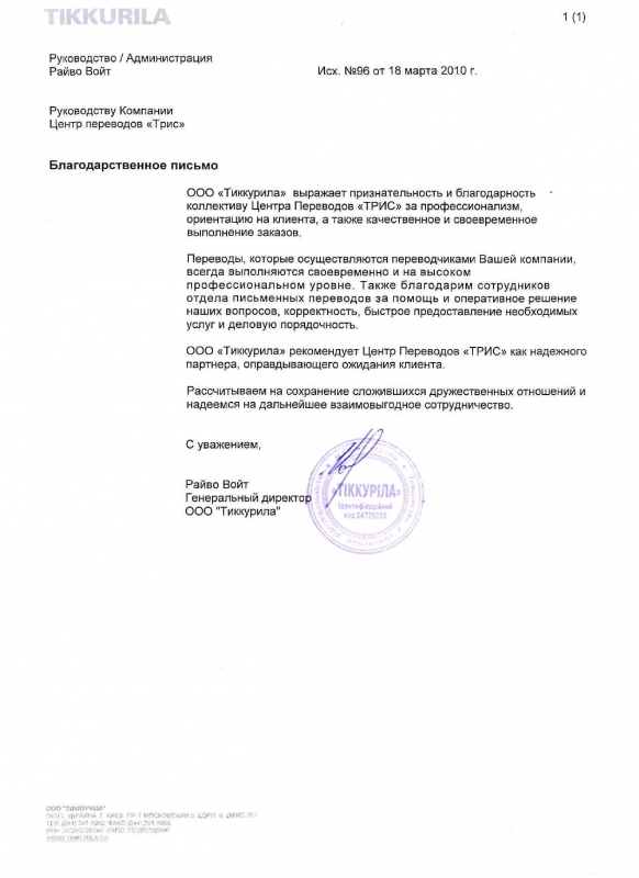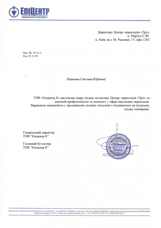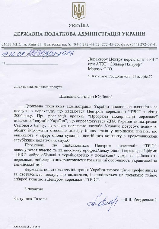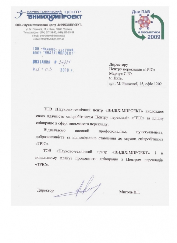 Список благодарностей бюро переводов «Трис» от наших клиентов. Мы по праву гордимся сотрудничеством с известными украинскими и международными компаниями. Каждый экземпляр закреплён мокрой печатью организации и хранится в главном офисе.