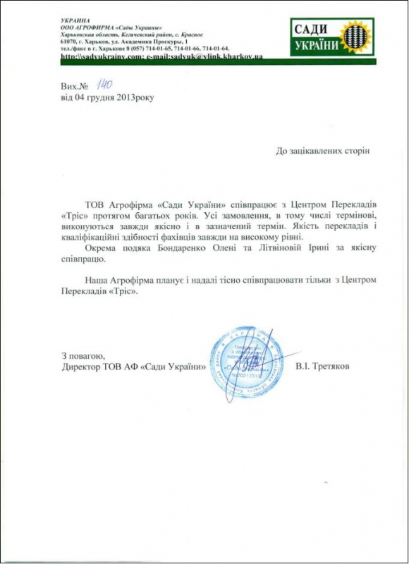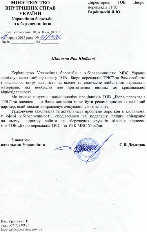 Команда БЮРО ПЕРЕКЛАДІВ "ТРІС" повідомляє, що у зв`язку із подіями у країні ми працюємо за ОНОВЛЕНОЮ ТА ЄДИНОЮ ФІЗИЧНОЮ АДРЕСОЮ ОФІСУ, а також НОВИМИ КОНТАКТНИМИ ДАНИМИ: