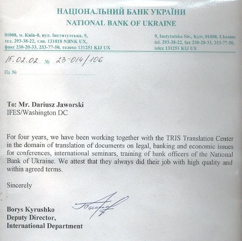21.12.2010 Мы выиграли тендер на обслуживание НБУ в течение 3-х лет (осуществление переводов на 44 языка)